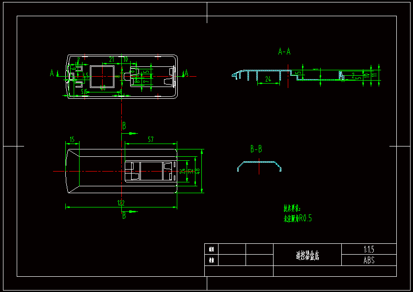 遥控器盒底塑料注射模具设计 根据塑件结构特点,模具采用单分型面注塑模,一模两腔,斜顶杆侧抽芯,顶杆顶出塑件,能够满足实际中大批量生产,有很高的生产效率。