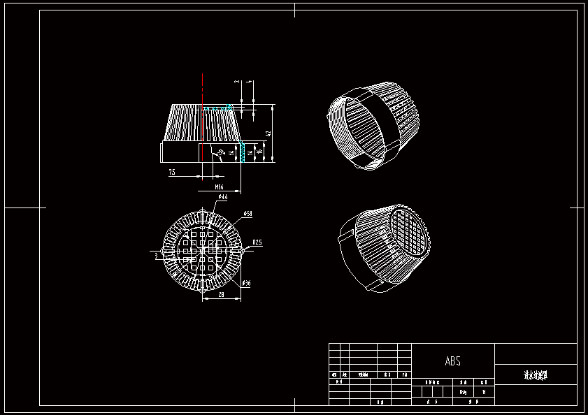 进水过滤罩注塑模具设计 根据塑件结构特点,模具采用单分型面注塑模,一模两腔,拼合式自动脱内螺纹机构,顶杆顶出塑件,能够满足实际中大批量生产,有很高的生产效率。