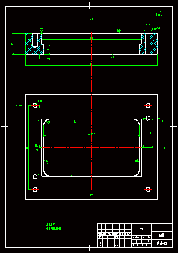 水槽冲压工艺及模具设计【含13张CAD图纸】文分析了水槽成形工艺,介绍了模具结构及设计过程。按照模具设计的一般步骤和要求,先分析了冲压件的形状特点、尺寸大小、精度要求、材料力学性能,并结合模具制造条件、生产批量等因素,分析了零件的冲压工艺性,根据分析初步拟定几套工艺方案。在综合比较几套工艺方案后,确定了冲压零件的工艺方案:先剪切,然后拉深,最后修边冲孔。在此基础上确定了冲压件的排样方式,并计算材料利用率。计算拉深力和冲裁力后,选择了压力机的型号和规格。最后,对模具上非标准件进行设计,对标准件进行选取。 本次设计的模具由拉深模和冲孔切边复合模组成。两套模具都采用了打杆顶块顶出、开式压力机、后侧导柱模架。拉深模采用了压边;冲孔切边复合模还用了废料刀来切掉废料。经过精确计算,可以证明在普通压力机上完全可以实现此类薄料零件的成形。