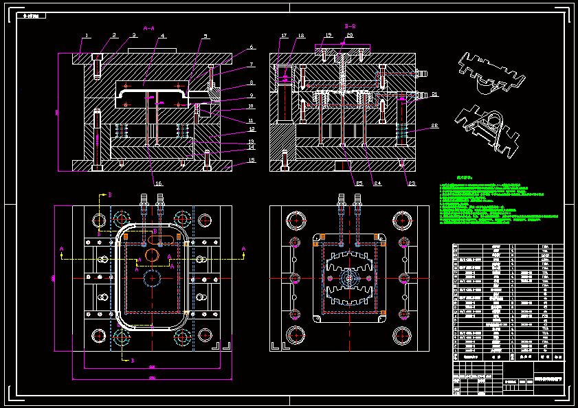 塑料传动链链节注塑模具设计【含14张CAD图纸】 (1)塑件名称:塑料传动链链节; (2)塑件原料:HIPS; (3)生产批量:大批量; (4)塑件表面不得有毛刺; 图纸包含CAD图纸14张和说明书,无三维图纸,请知悉。