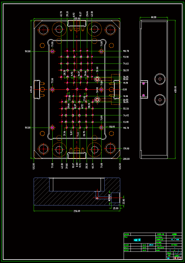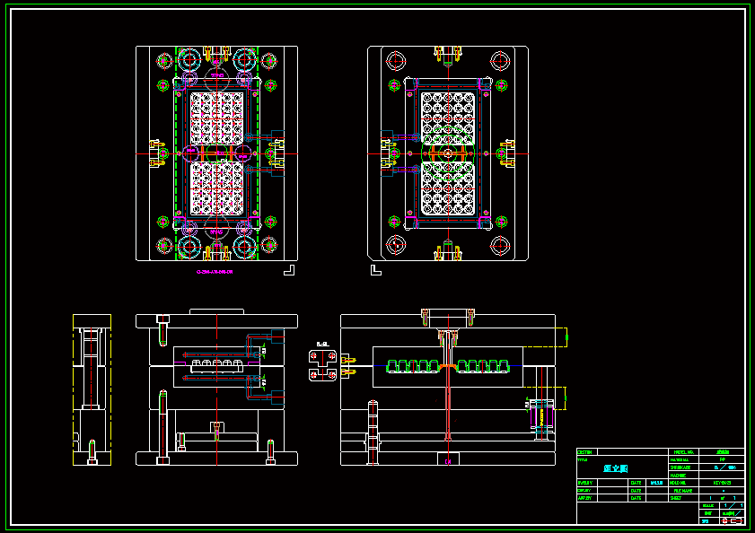 反应架的模具设计该反应架是一种医疗辅助治具,使用时固定在机械手臂上,用作临时存放试管之用。该产品在尺寸上无需较高精度,但要保证产品不可变形,不可有批峰。本模具采用一模两穴,冷流道,侧浇口进胶,设置冷却系统,注塑机采用FANUC A100C(100T),使用CAD绘制零件图及总装图,并运用简要的文字,简明的示意图和计算等分析塑件,从而作出合理的模具设计。