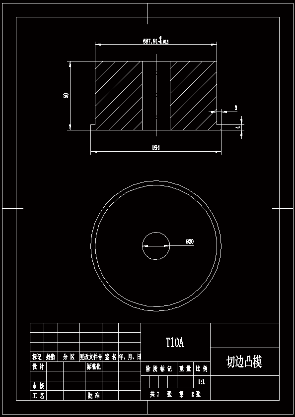 凸缘透盖工艺分析及模具设计凸缘透盖是一种典型的冲压成型零件,此设计的课题对凸缘透盖进行工艺分析并制定工艺方案进行模具设计。该件是一般的带凸缘拉深件,拉深和其他尺寸没有特殊的公差要求