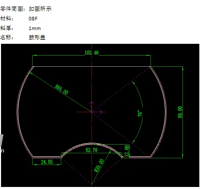 鼓形件工艺分析及模具设计 模具设计要求结构简单,易于制造;方便实用,便于操作工使用掌握。基于此要求,对于模具设计首先要根据工件图算出工件的展开尺寸,再根据其展开图形计算零件的压力中心、材料的利用率并画出排样图。根据零件的几何形状要求和尺寸分析确定采用单工序模、级进模还是复合模冲压,从而更加简单快速的完成工艺要求。