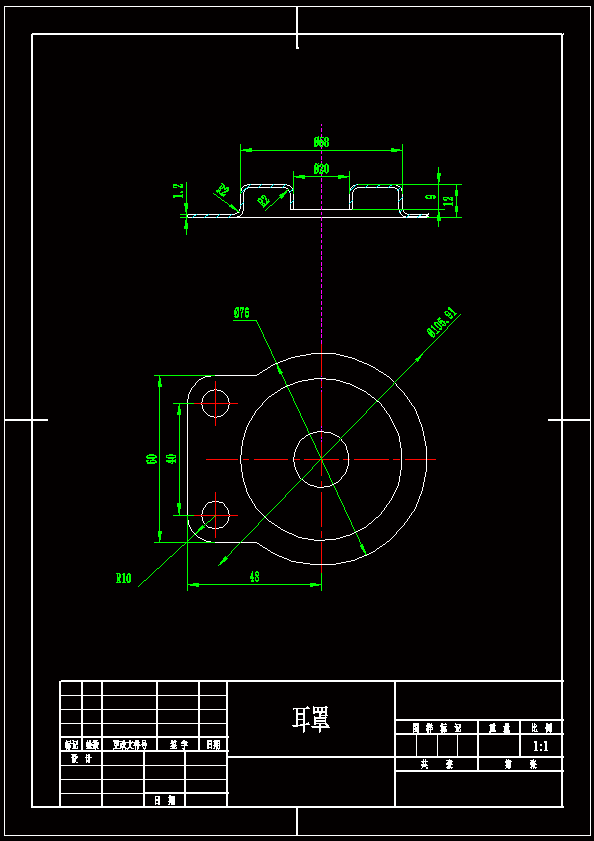 耳罩冲压模具设计【落料拉深模+翻边模】 在冲压加工过程中,将毛坯材料加工成冲压件的一种特殊工艺装备,被称为冲压模具(或称冲模、冷冲模)。冲模是进行冲压生产、实现板料冲压成形必可少的主要工艺装备。冲压件的冲压质量、生产效率以及生产成本等,都与冲模类型、结构及其零部件的设计制造精度有着直接关系。