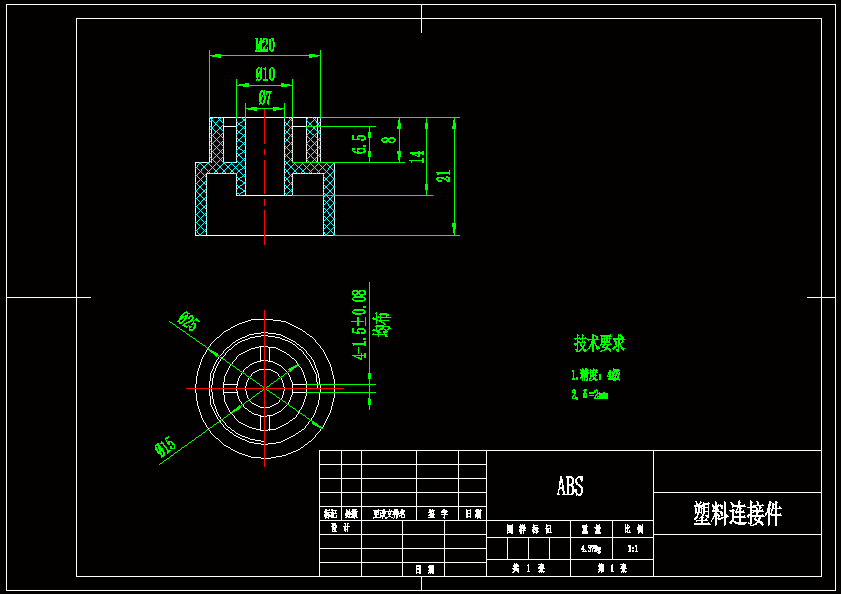 塑料连接件的设计,课题的目的是让我们在以往对模具设计学习的基础上熟悉塑料注射模具的设计流程;它既是一次检阅,也是一次锻炼,使我们系统地掌握塑料注射模具设计的技术!