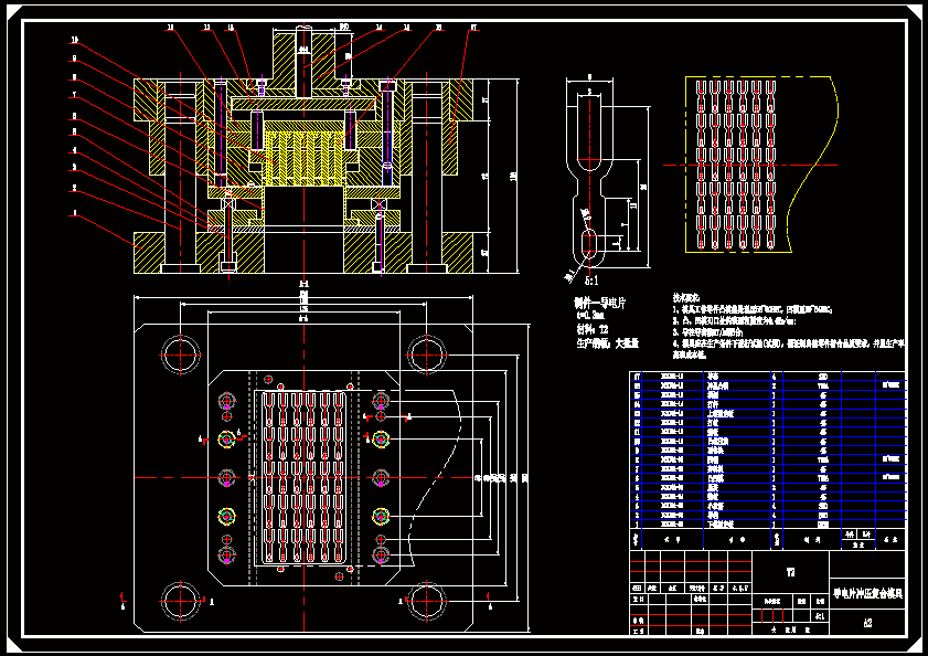 导电片冲孔、落料复合模的模具设计【原创】本设计进行了冲孔、落料复合模的设计。文中简要概述了冲压模具目前的发展状况和趋势。对产品进行了详细工艺分析和工艺方案的确定。进行了凹、凸模的闭合高度的计算并确定了模具的结构。计算并设计了本套模具上的主要零部件,如:凸模、凹模、凸模固定板、垫板、凹模固定板、卸料板、导板、挡料销等。选定了合理的冲压设备。设计中对工作零件和压力机规格均进行了必要的校核计算。此外,本模具采用挡料销挡料。模具的冲孔和落料凸模用固定板固定,便于调整间隙;冲孔凹模则采用整体固定板固定。