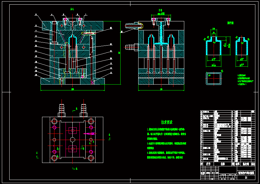 螺纹盖塞注射模具设计 系统的介绍了螺纹盖塞塑料成型工艺的基本理论和工艺知识,紧密结合模具设计的新发展,阐述了此模具设计的理论、方法和技术。全书共十一章,包括产品工艺性分析、模具结构形式的拟定、注射机型号的确定及校核、浇注系统的设计、推出系统的设计、排气系统的设计、温度调节系统的设计、成型零件的设计和模架的确定及典型零件的制造工艺等。