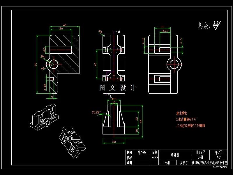 底座注塑模具设计为保证在生产过程中制造出理想的塑料制品,除应合理选用塑件材料外,还必须考虑成型工艺性,塑件成型工艺与模具设计有着直接的关系,为模具的型腔设计是根据塑件的形状决定的,所以,首先必须分析塑件图纸和技术要求。 要分析塑件的几何形状,壁厚的均匀程度,工艺圆角,脱模斜度及成型孔的分布等,应符合塑制工艺的要求,以及尺寸精度,光洁度应符合要求。