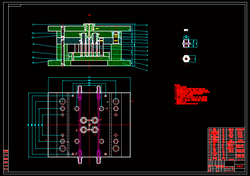 六角型ABS上下对称塑件带螺纹抽芯机构的塑料模具设计 说明书根据工程实际的需要完成六角型塑料件的注射模设计。在设计中采用塑料注射成型说明书中具体分析了产品的工艺性,确定了所采用塑料的工艺参数和所采用的成型设备,确定了模具制作的总体方案,分析并解决了模具的总体结构和各工作部分的具体结构,并进行了一些必要的尺寸计算和强度的校核。说明书中还对分型面、浇注系统、脱模机构和温度调节系统进行了分析设计,完成了工件工程图设计,圆满完成了模具设计所要求的各项工作。 本文中针对六角型塑料件注射模具制定出合理的设计结构,其中包括成型部分及其零部件设计,浇注系统设计,脱模机构设计,冷却系统设计等。根据分析,设计了一套塑料注射模具,并对模具以及主要零件进行了CAD绘图。
