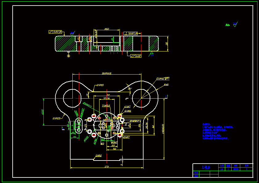 连接盖板冲裁模具设计 有以下五种工艺方案: 方案一:先落料,再冲孔,后弯曲,采用单工序模生产。 方案二:先落料,再弯曲,后冲孔,采用单工序模生产。 方案三:落料——冲孔、弯曲(同工步)复合冲压,采用复合模生产。 方案四:落料、冲孔(同工步)——弯曲复合冲压,采用复合模生产 方案五:落料——冲孔——弯曲连续冲压,采用连续模生产。 下一步,必须对这些方案进行比较,选取在满足冲压件质量与生产率的要求下,模具制造成本较低、寿命较高、操作较方便及安全的工艺方案。 一般对于这样的工件,通常采用先落料、冲孔,再弯曲的加工方法。由于该工件的生产批量较大,如果把三道工序放在一起,可以大大提高工作效率,并减轻工作量,节约能源,降低成本,而且可以避免原有的加工方法中须将手伸入模具的问题,对保护操作者也很有利。因此,该工件的加工工艺方案只能在方案三和方案四中选择。 采用方案三加工工件,不易保证长度尺寸 的精度,而且易使内孔冲头磨损,降低模具寿命。 经分析、比较最后确定方案四为最佳方案。