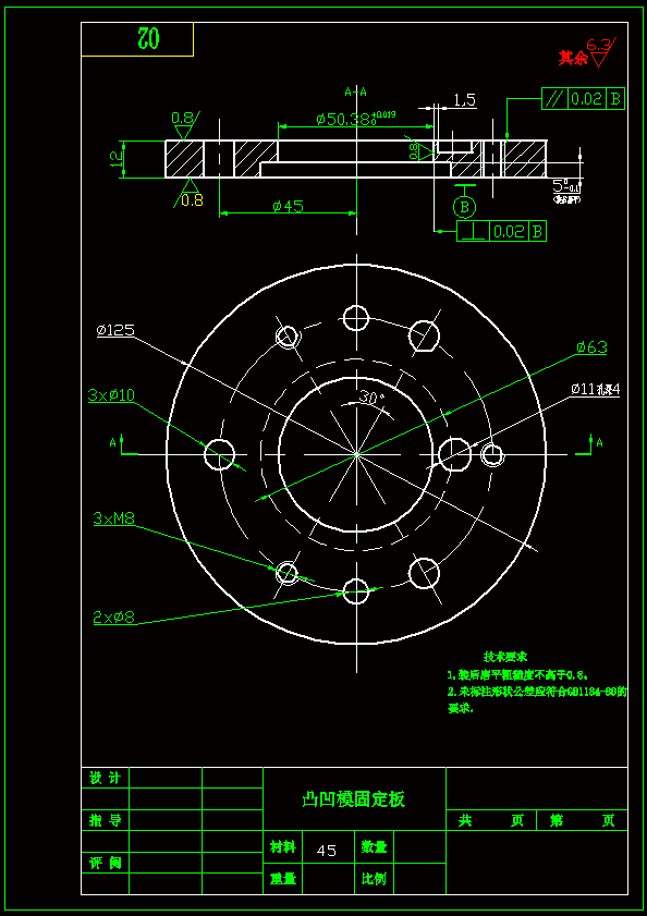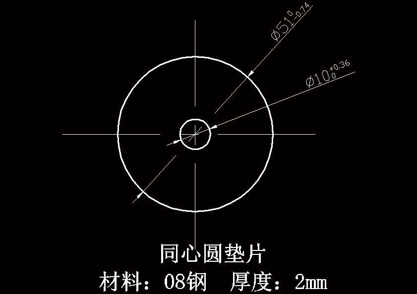 同心圆垫片垫圈落料冲孔复合模具设计 此工件冲孔、落料两个工序。 材料为08钢,具有良好的冲压性能,适合冲裁。工件结构相对简单,有一个φ10mm和1个φ51mm的孔;孔与孔、孔与边缘之间的距离也满足要求。工件的尺寸全部为自由公差,可看作IT14级,尺寸精度较低,普通冲裁完全能满足要求。落料冲孔一次成形,采用复合模生产。