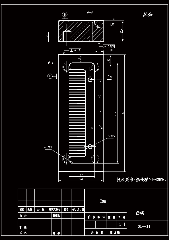 梳子成型工艺及模具设计 本设计系统介绍了塑件的成形工艺及模具成型结构对塑件质量的影响分析,浇注系统的设计,模具成型部分和总装结构的设计。介绍了梳子注塑模具设计时要注意的要点,并较多的考虑了模具结构的调整性、易更换性及模具成本。从控制制件尺寸精度出发,对梳子注塑模的各主要尺寸进行了理论计算,以确定各工作零件的尺寸,从模具设计到零部件的加工工艺以及装配工艺等进行详细的阐述,并应用CAD进行各重要零件的设计。
