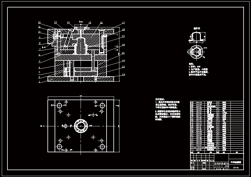 外罩的成型工艺及模具设计 本设计运用塑料成型工艺及模具设计的基础知识,首先分析了塑件的成分及性能要求,为选取浇口的类型做好了准备;然后估算了塑件的体积,便于选取注塑机;最后分析了塑件的特征,确定模具的设计参数、设计要点及推出装置的选取。 本塑件属于外罩壳体类零件,其一侧有一个长方形的侧孔,因此设计时必须有侧向抽芯。考虑到制件腔体较深,对型芯的包紧力较大,所以采用推件板推出结构,这种推出结构推出力大且均匀,有助于保护制件,非常适合在本副模具中使用。