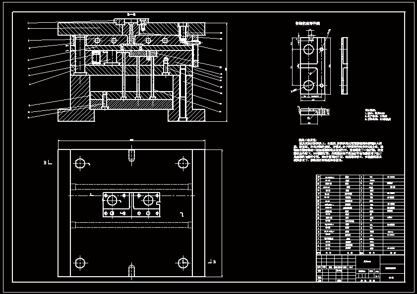 安装极板塑料成型工艺及模具设计 本设计运用塑料成型工艺及模具设计的基础知识,首先分析了塑件的成分及性能要求,为选取浇口的类型做好了准备;然后估算了塑件的体积,便于选取注塑机及确定型腔数量;最后分析了塑件的特征,确定模具的设计参数、设计要点及推出装置的选取。 本塑件的两侧都有螺纹孔,采用顶杆顶出,有利于模具的简化,工作效率较高,这是这种模具的普遍之处。这种机构脱模可靠,非常适合在本副模具中使用。
