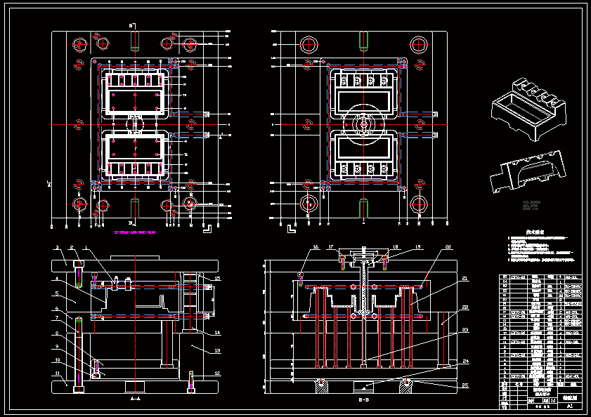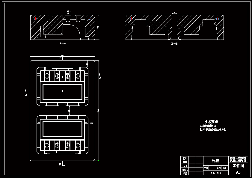 塑料笔架的模具设计 此塑件是一个塑料笔架,其形状比较复杂,尺寸比较大。该塑件后半部分的半圆槽和插孔可以放些圆珠笔、铅笔和中性笔之类的文具,而前半部分可以放些橡皮、卷笔刀之类的小文具。塑件采用壳体结构,其壁厚为2.5mm,边界尺寸为140x100x60mm。另外,笔架的底端设置成为阶梯孔的形式,以利于平稳放置,并且可以降低塑件的加工难度,减轻塑件的重量。经综合比较,其材料选用绝缘性能较好的热塑性材料——聚丙烯[5]。塑料笔架设计成这种构造不仅耐用、美观,而且节省材料