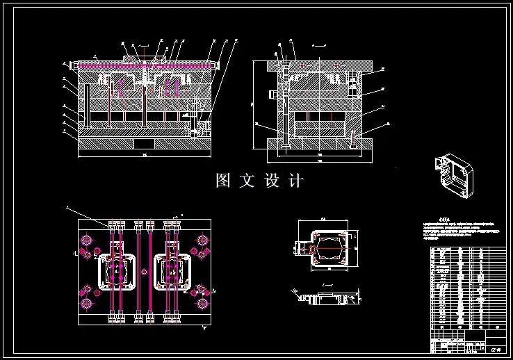 异形盒盖-口字型塑件模具设计 分析塑件结构及生产方式宜采用双分型结构,对浇注系统、成型零部件、导向及定位机构、脱模机构、冷却系统、模架各部件零件都进行了相关的计算和选择。最后,在参照塑件的体积、重量等参数后对注塑机的相关主要参数进行校核,以判断所选的注塑机能否满足注塑要求。