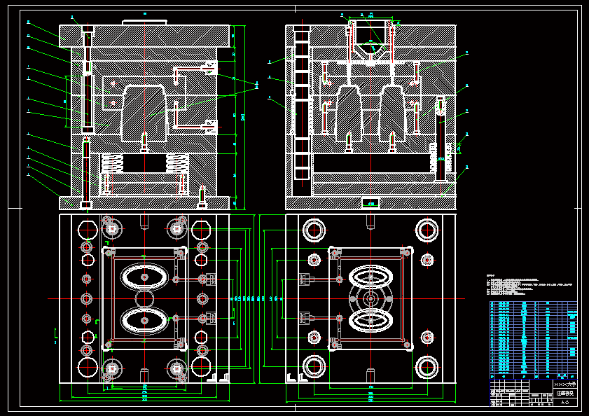 本设计为注塑模的设计,设计分型面选在截面最大处,塑件成型后利用推杆将成型制品从动模上推出,回程时利用复位杆复位。 设计中需要对塑件的尺寸进行计算,确定尺寸精度,然后进行注射机的选取。对注射机参数进行校核,包括模具闭合厚度、模具安装尺寸、模具开模行程、注射机的锁模力等。各个参数都满足要求后才能确定注射机的型号。 在设计过程中,为了更清楚的表达模具的内部结构,因此附有大量的模具结构图和模具局部图,并通过通过CAD和三维软件画出它的二维、三维立体图。
