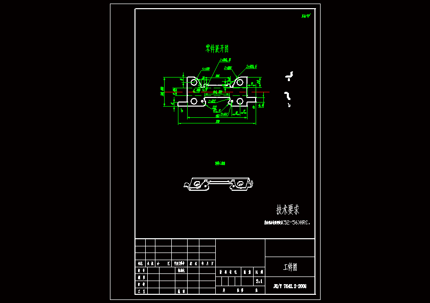 冲压生产靠模具与设备完成其加工过程,生产效率高,操作简便,易于实现机械化和自动化,可以获得其他加工方法所不能或难以制造的、形状复杂的零件。冲压产品一般不需要经过机械加工便可使用。冲压加工过程一般也无需加热毛坯。所以冲压生产不但节约金属材料,而且节约能源,冲压生产一般还具有重量轻和刚度好的特点。在多工位级进模结构设计过程中,首先必须设计级进模的总装结构,然后再在此基础上进行模具其他零部件的设计。本说明书分析了CPU散热卡子的工艺性,介绍了CPU散热卡子多工位级进模总体结构设计,对工件进行了展开计算,确定了工件加工成型的工艺方案和排样方案,对模具进行了工艺计算,根据计算结果进行了凸模、凹模、垫板、导料板、卸料板、镶块等主要零部件的设计,还根据各标准对模具中用到的其他标准件,如模架、导柱导套等,进行了选择与设计。实践证明:该模具结构合理、可靠,并能保证产品质量,对此类零件的级进模设计有参考价值。
