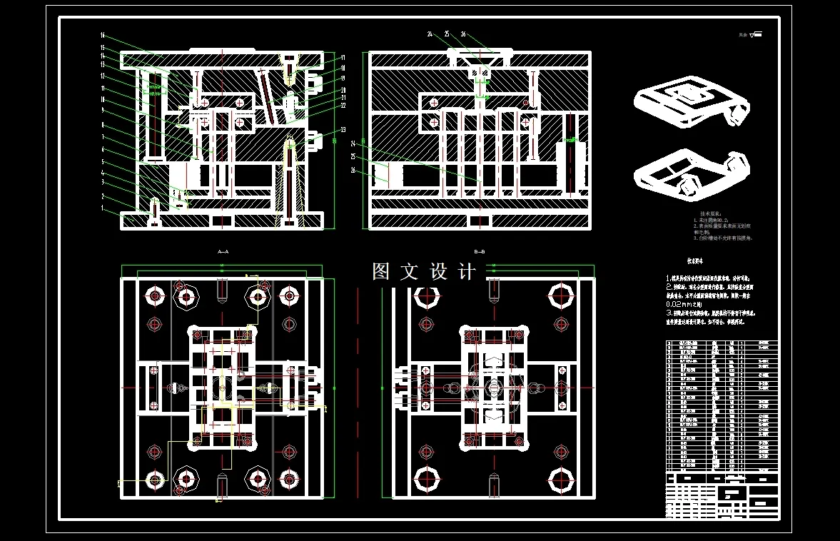 此设计为引擎盖开关注射模设计(17164),采用一模二腔,侧浇注口进行填充,提供三维(UG格式)+二维装配图1张及主要零件图8张+设计报告文档( 文档约1.4W字 43页)。对ABS的了解,要满足制品大批量生产、高精度、外形复杂等要求,我首先主要把时间花费在确定所需的模塑成型方案、制品的后加工、分型面的选择、型腔的数目选定为一模二腔,将他们上下平均排列、还对成型零件的结构等进行了分析。脱模机构采用了4支5mm圆柱推杆做为顶出脱模,因为零件侧面有两个圆孔所以必须设计斜导柱侧抽芯。