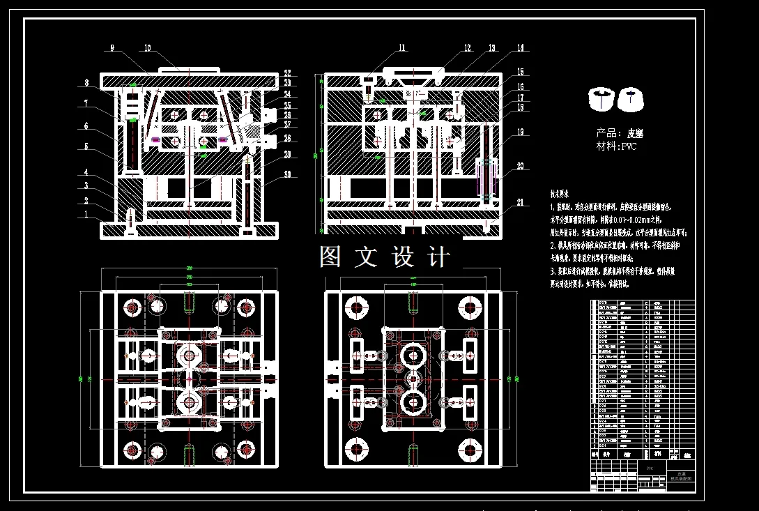 此设计为皮塞成工艺与模具设计,采用一模二腔,侧浇注口进行填充,提供三维(UG格式)+二维装配图2张及主要零件图11张+设计报告文档( 文档约1.4W字 43页)。