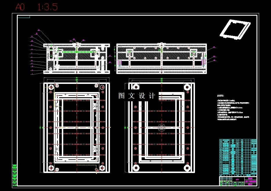此设计为大型LED电视机前面板注塑成型工艺优化与模具设计,采用一模一腔,侧浇注口进行填充,提供三维(UG格式)+二维装配图1张及主要零件图11张