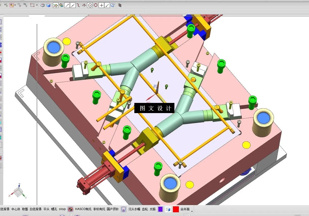 此设计为PVC水管分流管注塑模具设计,采用一模二腔,侧浇注口进行填充,提供三维(UG格式)+二维装配图及主要零件图+设计报告文档( 文档约1.5W字 34页)。