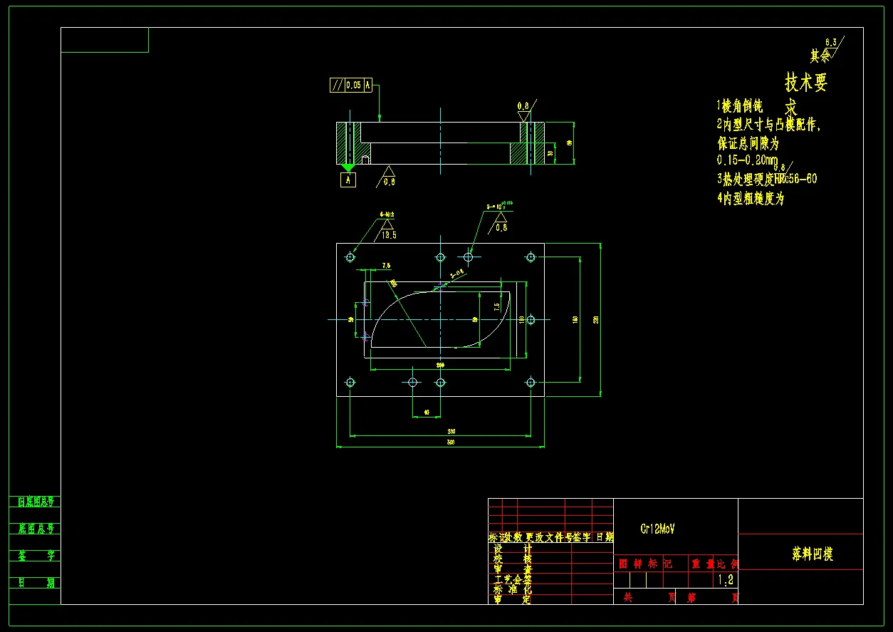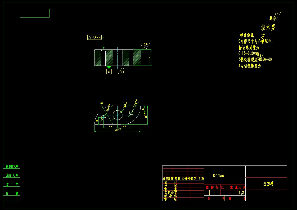 零件名称:叶片 材料为Q345 抗拉强度(σb/MPa): 345 断后伸长率(δ5/%):≧28 料厚为t=2mm,生产性质属大批量生产。采用倒装复合模进行加工。