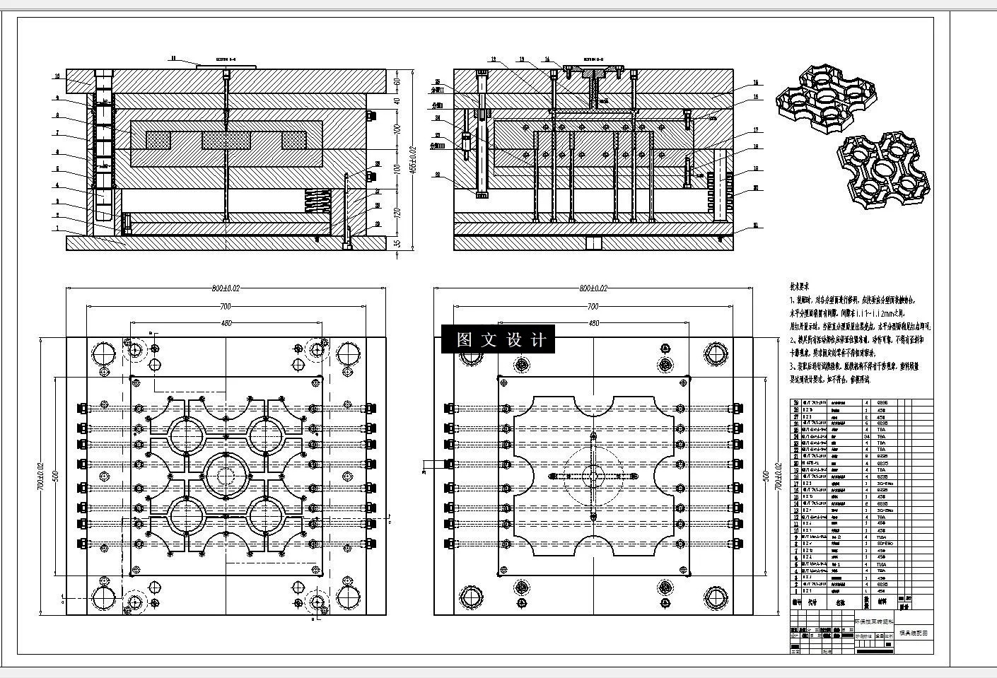 此设计为环保植草砖塑料注射成型模具设计,采用了一模一腔的设计,点浇口,三板式模架。提供三维(UG格式)+二维装配图及主要零件图+设计报告文档( 文档约1.3W字 30页)。