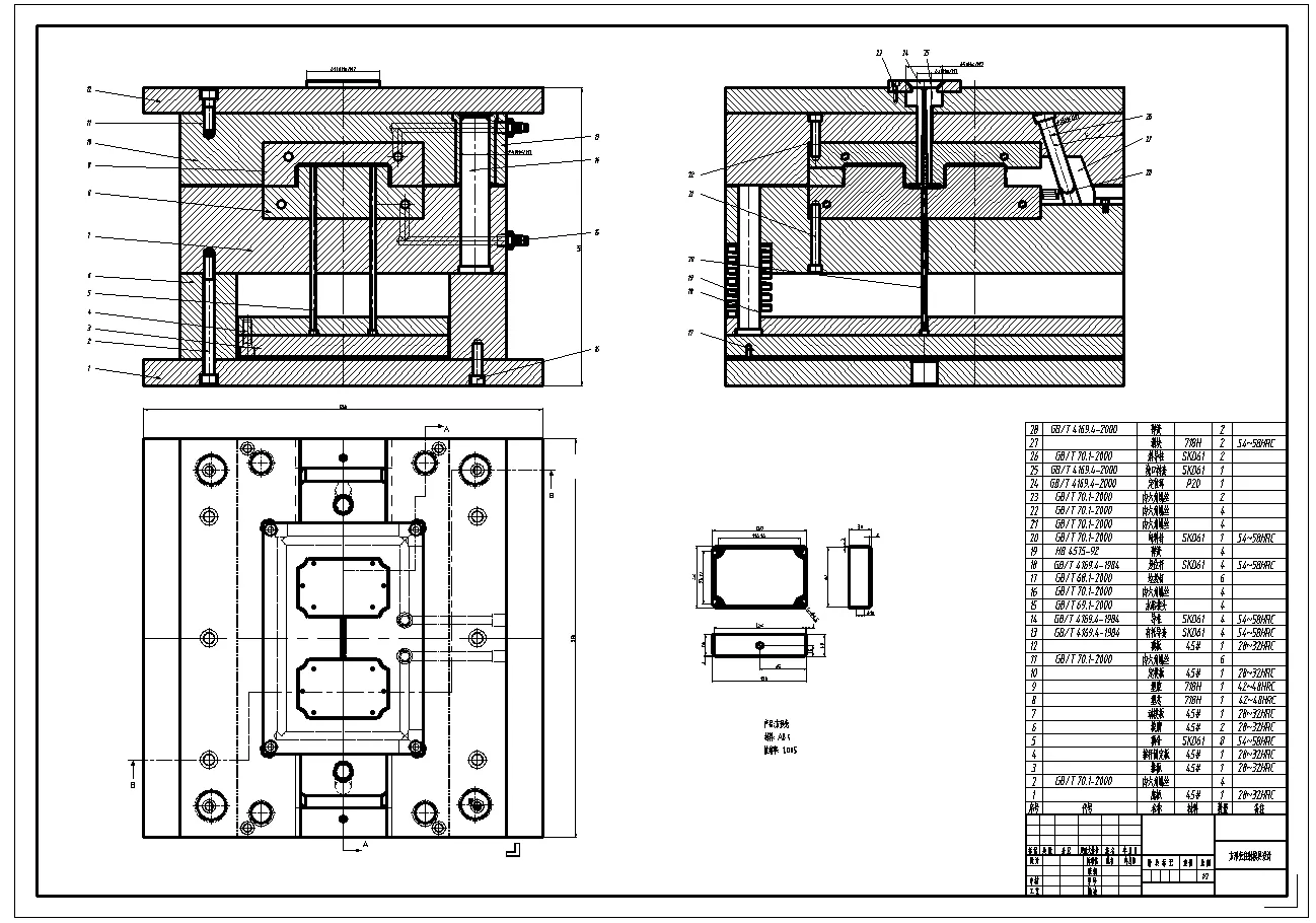 此设计为方形壳注塑模具设计,选用了一模二腔的型腔分布,因为零件侧面有孔所以使用了侧抽芯机构的侧向脱模方式。本设计的注塑模具有着结构简单,生产工作稳定不容易故障,模具的结构紧凑、容易维修、精度高、寿命长等多种优点。提供三维(UG格式)+二维装配图及主要零件图+设计报告文档( 文档约1.5W字 37页)。