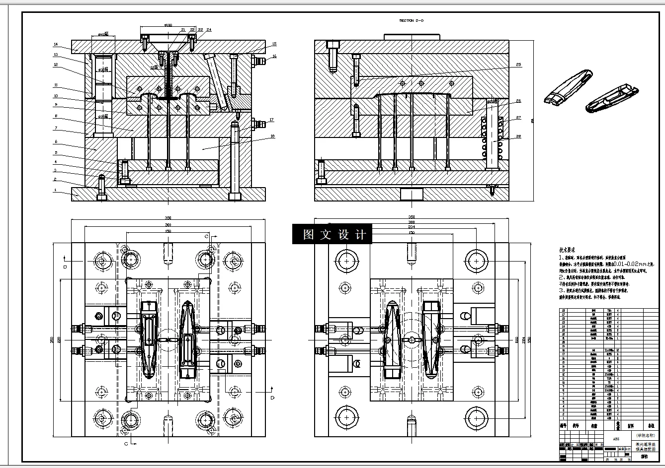 激光笔后盖注塑模具设计,一模二腔,侧浇口, 有侧抽滑块。提供三维(UG格式)+二维装配图及主要零件图+设计报告文档( 文档为约1.6W字 39页)。