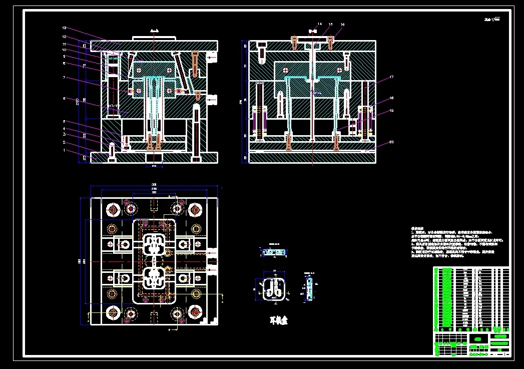 耳机盒注塑模具设计 一模二腔,两板式模架,侧浇口。提供三维+二维装配图及主要零件图+设计报告文档,本次设计主要根据任务书所给的耳机盒来进行模具的设计,利用UG对耳机盒进行模型的建立,然后根据其体积和质量选择注射机的型号,并对耳机盒的模架进行了设计,对模具进行了校核,完成了浇注系统和型腔的布局的设计,并完成了三维装配图和二维图的设计及设计文档。
