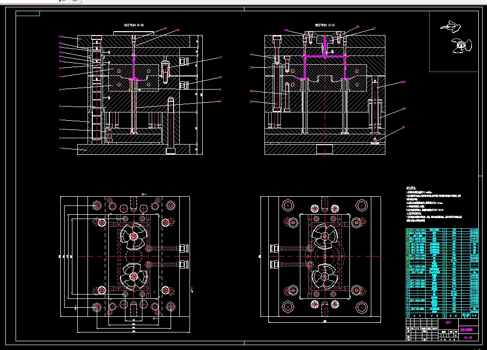 在确定好注射工艺和模具各系统设计方案后,操作UG三维软件对ABS材质的风扇叶塑料件建模并进行模具工艺分析。而设计模具整体中,同时还要满足模具跟成型设备间的参数信息默契配合,因此后续也作出了计算检验使其相互之间校核合理使用,避免过度浪费,也起到降低塑件制造成本的好处,也更严谨地改良腔体部件设计。最后阐述了模具在成型和动作的工作原理,并经由大量计算校核公式对各系统与注塑机之间的校正。