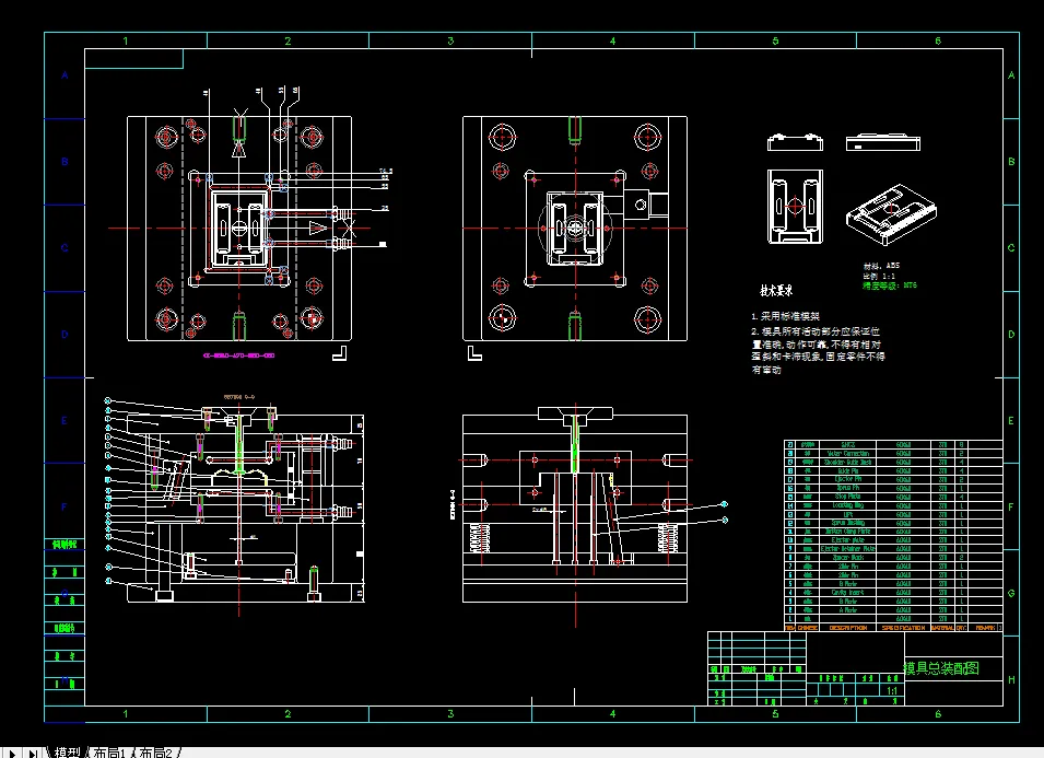 本设计以充电电池座的注塑模具设计为主要内容,详细介绍了注塑模的设计的一般流程,注塑模具的设计一般包含:注塑机的选用,模具布局的确定,浇注系统的设计,抽芯机构的设计,模架的选取,冷却系统的设计以及注塑机参数的校核。