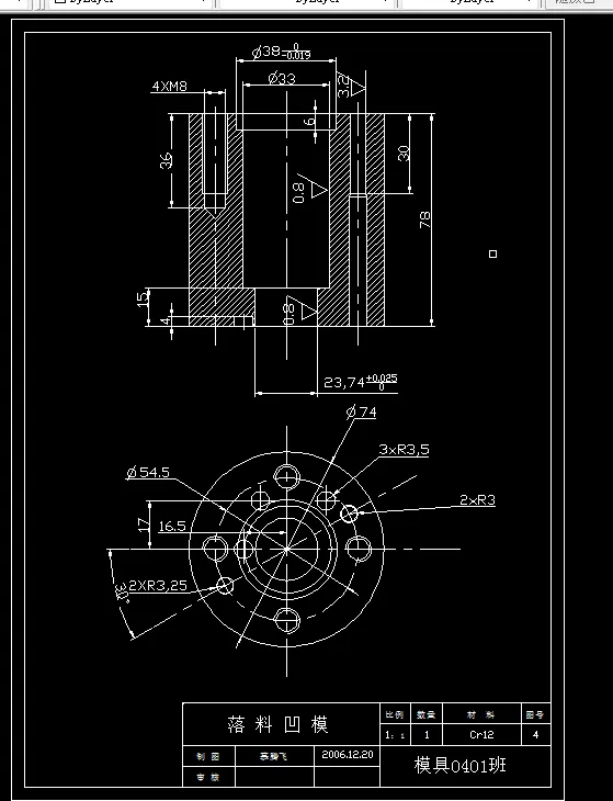 我设计的弯管垫片模具,材料为黄铜H68,厚度t=1.5mm。传统的加工方法为落料、冲孔、翻边、修整。我的加工方法比较特别:由于材料和厚度的原因,我采用的加工方法为:落料、(省去预制孔)直接穿孔、翻孔、再利用翻边凸模与翻边凹模的间隙进行挤切修边。从而完成工件的加工。