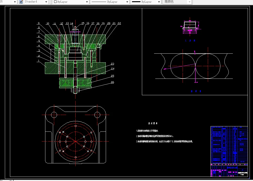 全篇共分为三章。第一章是设计油泵壳体模具的工艺方案的确定,主要根据所给制件特点加以分析,设计出合理的模具,这里共设计出两套模具。第二章是落料拉深复合模的设计,其中包括一些典型结构的选择和一些非标准零件的设计。第三章是冲孔翻边复合模的设计,包括各种模具零件的选择和一些零件尺寸的计算。第一套模具是典型的结构,第二套模具则根据制件工艺要求进行了部分创新。