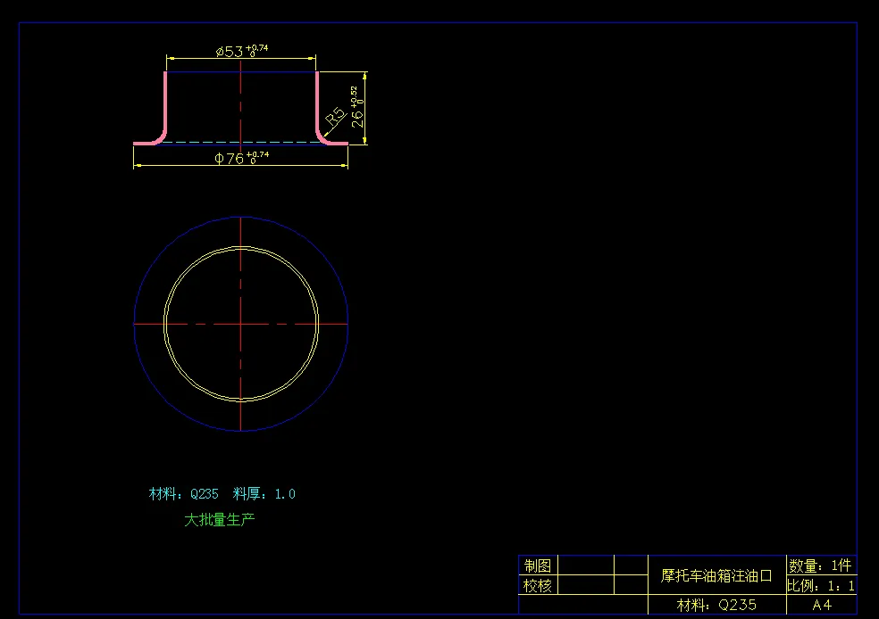 此次,我的毕业设计的标题是接触器触头托片级进模的设计。级进模的优点就是,生产销率成倍的提高。但是,缺点也是显而易见的,那就是级进模的设计难度相对于单工序模的设计难度更高些。现代化的企业,所追寻的目标皆是自动化和高效率。而级进模,一次冲压零件,就可得到想要的成型零件。另外,由专业的送料机器或者是专业的送料机构,和压力机进行配套。从而,实现冲压零件自动化和高效率的生产。接触器,是说电源产生电流,然后电流沿着导体流进线圈,产生磁场,接着磁场产生的磁力使得触头(触点)在磁力作用下合上的一种电器。触头托片,是接触器里面的一个零部件。其作用,顾名思义,就是用来定位和固定接触器触头(触点)的位置。所以,对触头托片的圆孔位置精度要求相对较高。我的毕业设计论文说明书的内容主要有以下几点:对接触器触头托片的材料、结构、工艺性进行分析;拟定接触器触头托片的排样方案和冲压方案;对凸凹模及其他零部件的设计、计算等等。从而,设计出一套符合要求的冲压模模具。所使用到的电脑软件主要有:Solidworks,CAD,CAXA,WPS,VISIO等。当设计、计算出零部件尺寸后,利用Solidworks进行三维建模,然后CAD及CAXA进行二维画图,最后生成、打印符合要求的图纸。