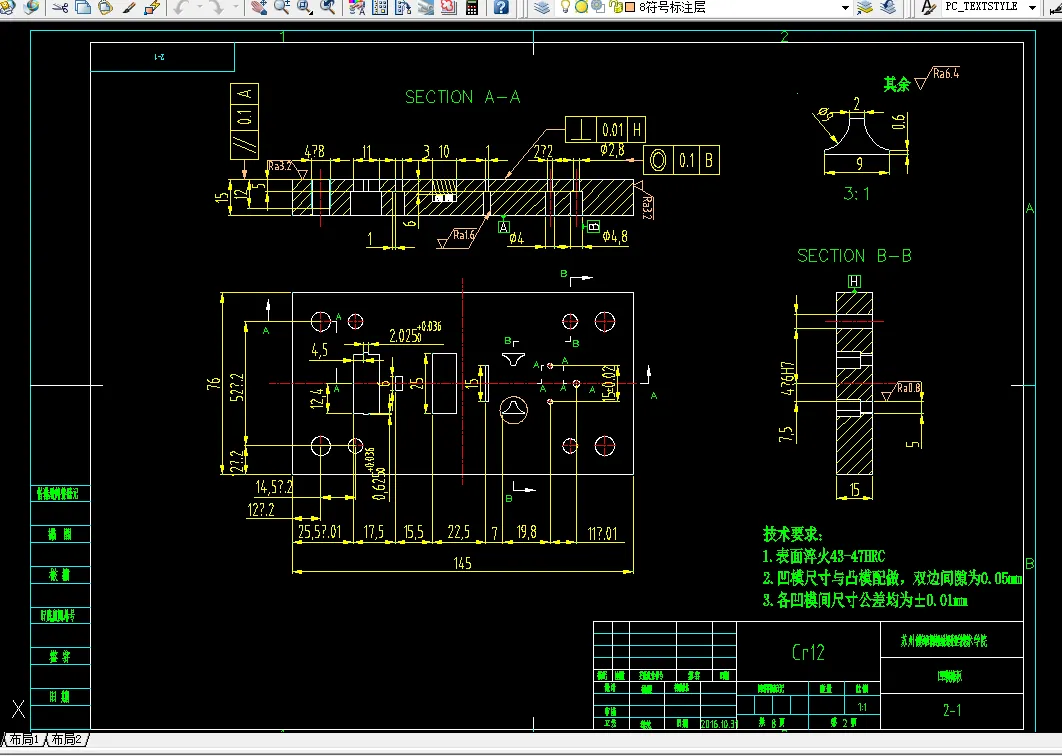 U形连接件的冲压工艺和模具设计是通过工件的工艺分析,包括材料分析、产品结构形状分析,从而确定工艺方案为级进模。