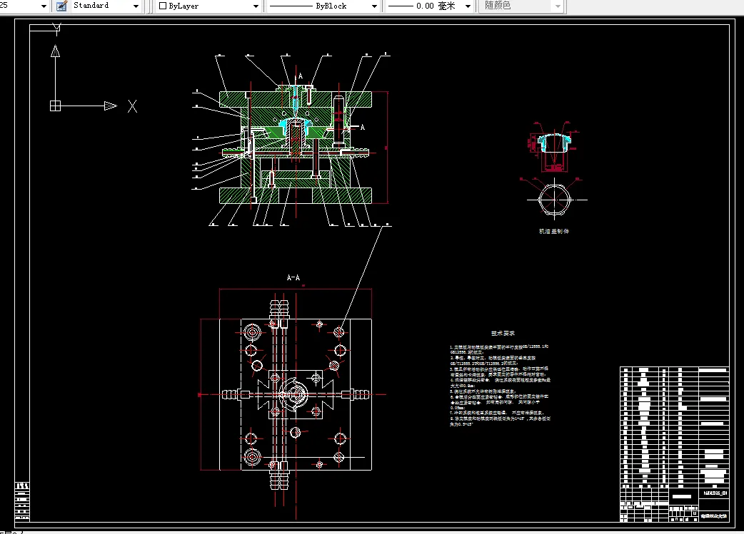本篇设计说明书大体分为三大部分,第一部分是绪言,内容包括注塑模具的概述,塑料成型模具在加工工业中的地位,塑料模具的发展趋势以及塑料成型模具的分类。第二部分是注塑模具的总体设计, 内容包括塑料注塑模具的工作原理及应用, 设计准则以及材料的选择与产品见解. 注射机类型的选用, 注射机有关工艺参数的校核,浇注系统设计(浇口形式的选择以及尺寸计算,主流道尺寸的计算,冷料穴,排气槽),塑料注塑模具的设计计算, 包括模具结构设计[分行面的确定,凹模(型腔)结构形式,凸模的结构形式,凹模(型腔)和凸模工作部分的尺寸计算],导向机构的设计,推出机构的设计,抽芯机构的设计,冷却系统的设计等方面. 第三部分是介绍CAD/CAM在模具设计与制造上的应用, 包括Pro/ENGINEER实体设计,AutoCAD平面二维图纸的绘制,CAXA图幅,图框,标题栏的调用。