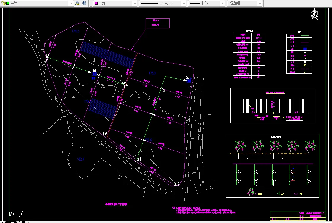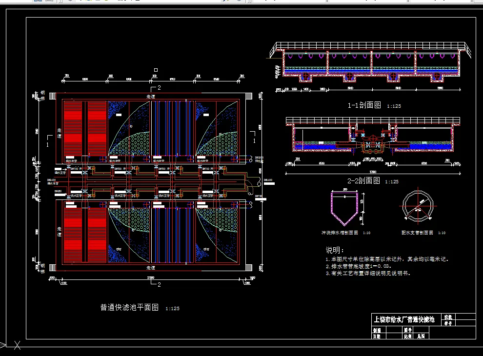 ④ 三张2号图纸(一张为平面图,第二张为高程图,第三张为某一构筑物图)。设计图纸所采用的比例、标高、管径、编号和图例等应符合《给水排水制图标准》的有关规定。