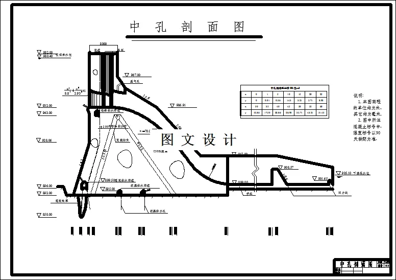 拟定重力坝剖面的基本原理。重力坝的基本剖面及实用剖面。剖面优化的概念,重力坝的可靠度设计,可靠度设计原则,极限状态设计方法。宽缝重力坝的特点:设宽缝后,坝基渗水可从宽缝中排出,坝底渗透压力大为降低并使扬压力作用面积减小,坝体体积较实体重力坝减少10%——20%甚至更多,同时增加了散热面,又为观测检查,加固维修提供了厂地。泄水重力坝的剖面设计,泄水重力坝的工作特点及泄水方式(坝顶溢流式、深式泄水孔);溢流重力坝的剖面设计;泄水孔的布置;设计流量的确定;单宽流量的选择;堰顶高程,溢流前缘长度,孔口尺寸及其位置的确定;深式泄水孔的形式及构造。