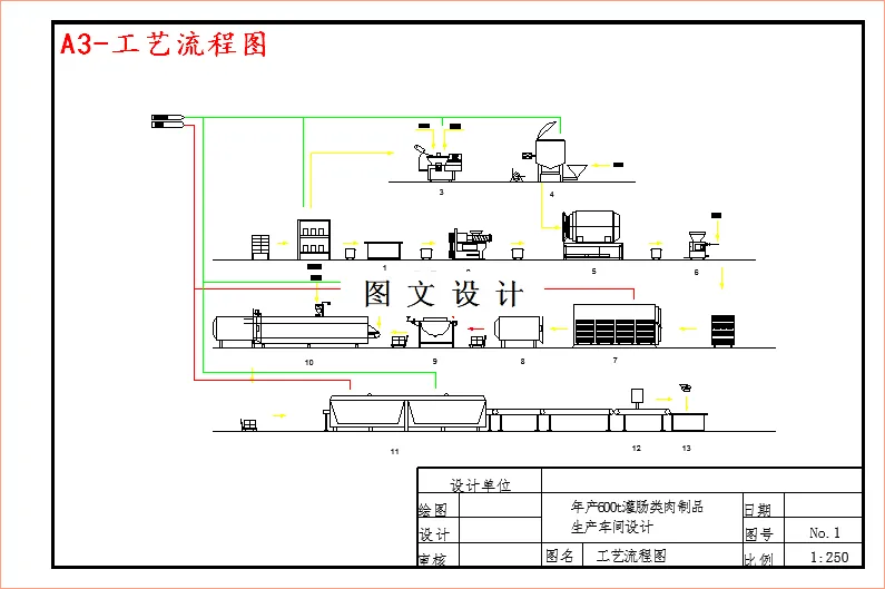 本设计承担了年产600吨灌肠类肉制品生产车间设计,整个工厂的设计涉及以下内容:产品市场分析、原材料供应、厂址的选择、工艺设计及论证、生产方案与产量、物料衡算、热量衡算、设备选型与计算、车间的平面布置以及环境保护等。车间设计主要包含两种肉灌肠产品:香辣香脆肠和台式烤香肠。按照设计任务书的要求大量收集了各个方面的资料,将厂址确定在江苏无锡。根据工厂的实际生产情况确定本厂每年实际生产日期为300天,每天产量为2吨,确定生产班数为一班,每班产量2吨。坚持技术上先进,经济上合理,设计上规范的设计原则。在厂区的划分以及车间布置方面,做到既能满足计划产品的生产,又照顾到未来发展,既满足工艺要求,又照顾到建筑施工的可行性。在选型设备方面,尽量选用自动化机械设备,为生产的操作化单元和标准化提供良好的条件,进而实现较高程度的自动化生产。