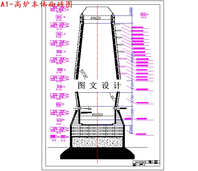 高炉冶炼是传统的炼铁工艺,也是钢铁冶金过程中最重要的环节之一,在国民经济建设中起着举足轻重的作用。随着钢铁行业的蓬勃发展和节能环保要求的日益严格,高炉炉型逐渐走向大型化。本设计按照设计说明书的要求,本着优质、高产、低耗和对环境污染小的方针,对于在唐山地区设计建造一座年产生铁400万吨的高炉炼铁车间进行了详细设计,其中包括绪论、工艺计算(包括配料计算、物料平衡和热平衡)、高炉炉型设计、高炉各部位炉衬的选择、炉体冷却设备的选择、风口及出铁场的设计、原料系统、送风系统、炉顶设备、煤气处理系统、渣铁处理系统、高炉喷吹系统和炼铁车间的布置等。设计的同时还结合国内外相同炉容高炉的一些先进的生产操作经验和相关的数据,力争使该设计的高炉做到高度机械化、自动化和大型化,以期达到最佳的生产效益。