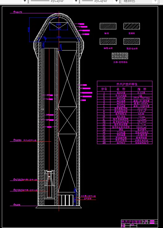 设计的热风炉采用传统改进型内燃式热风炉。蓄热式和燃烧室在同一炉壳内。这部分同时包括热风炉各种设备和阀门的选取计算。