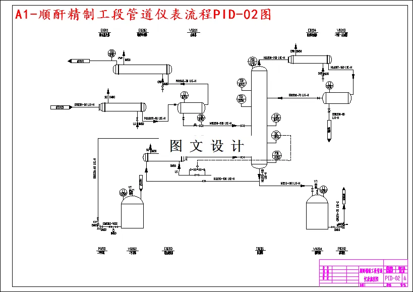 此次选题为9000吨顺酐/年精制工段成品塔的设计。通过对四种主要生产路线的比较,选用生产技术成熟且经济合理的苯氧化法生产顺酐,催化剂为V2O5。反应器为固定床反应器,产物依次经过部分冷凝器,酸水蒸发器,恒沸精馏,减压精馏最终得到成品。设计过程中主要的工作有物料衡算,能量衡算,并在此基础上对成品塔进行主要的设计计算和校核,以及车间其他部分设备的计算、选型。依照施工图的深度和规范对车间管道仪表流程图、重点设备的装配图、精制工段车间布置图进行绘制。并对车间能量进行有效合理的利用,对副产物回收及三废治理提出了经济可行的方案,提出车间的具体安全管理措施,为项目的建立投产提供较为详尽的资料与图纸。