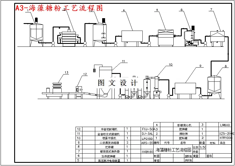 拟设计产品品种:海藻糖软胶囊,规格为0.5g/粒.设计规模:年处理海藻糖18000吨 年生产能力1亿粒;日处理60吨海藻糖 工作日为300天 每天两班每班8小时。绘制海藻糖胶囊工厂总平面布置图、生产车间设备平面布置图、生产车间工艺流程图及主设备流程图。本课题旨在考察高压脉冲电场破壁提取啤酒酵母海藻糖的处理参数,优化PEF提取啤酒酵母细胞中海藻糖的工艺。首先是构建海藻糖的质量分析方法,通过开展精密度试验、回收率试验、重现性/稳定性试验验证海藻糖检测方法的优良性。其次,通过查阅文献,我们发现利用高压脉冲电场提取海藻糖,影响海藻糖提取率的因素是很多的,尤其是啤酒酵母中存在酸性及中性海藻糖分解酶,酶活性对海藻糖得率影响较大。因此,本文首先进行单因素实验优化出PEF处理啤酒酵母的pH值因素,再分别考察电场强度、脉冲数及液料比单因素对海藻糖分解酶活性的影响,选出抑制啤酒酵母海藻糖分解酶的显著性因素,采用响应面设计实验方法,优化PEF抑制酶的工艺参数。最后以海藻糖得率为衡量指标,结合抑制酶的工艺参数,进行正交旋转组合设计,确定海藻糖的提取时间,优选出制备啤酒酵母海藻糖的最优工艺并构建出工程化回归模型。