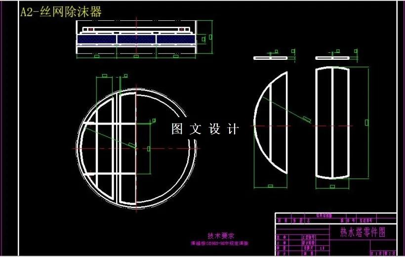 本设计主要是针对DN1400热水塔的结构设计。对该设备的要求是经久耐用具有良好的耐腐蚀性,较高的机械强度和必要的耐热性。取材容易,价格便宜。坚持改善流体的均匀分布,提高传递效率,减少流动阻力,增大流体的流量以满足降耗、节能、设备放大、高纯产品制备等各种需要的方向,设计出满足工艺要求的热水塔。论文主要内容包括:塔体的设计计算与校核;塔的内件及附件;丝网除沫器、支撑格栅板、床层限制器、液体分布器等的选取设计。