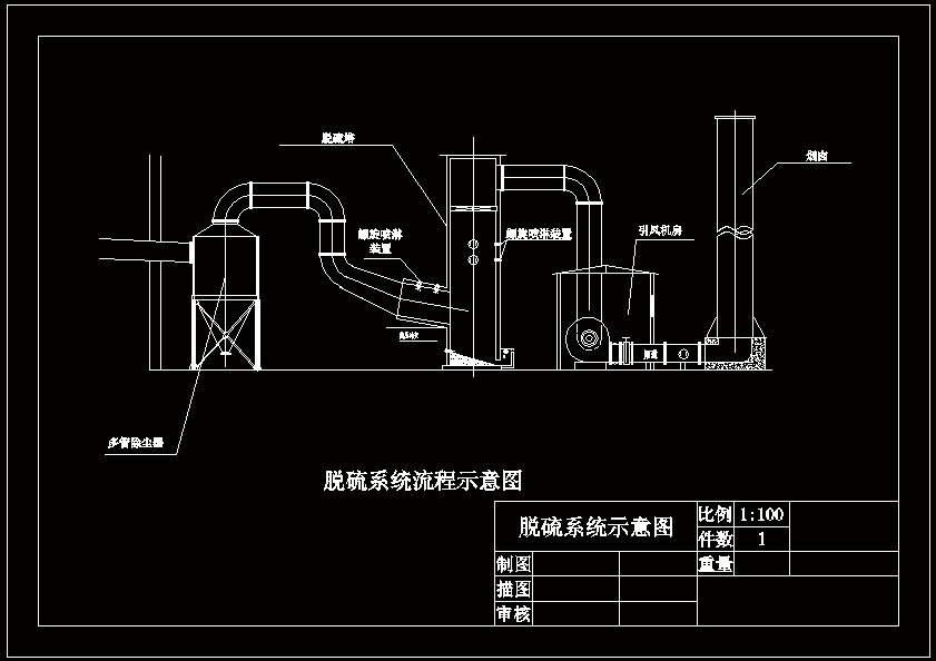 SG-400-140型火电厂锅炉中硫烟煤烟气湿式石灰法脱硫尘系统设计 锅炉烟气除尘脱硫工艺与脱硫方法有关。 干法脱硫:先除尘后脱硫; 湿法脱硫:多种方法。视实际情况而定。 可行的途径有:1)利用现有除尘设备,设计脱硫装置; 2取消原除尘设备,设计除尘脱硫新系统。 本例题拟采用先有除尘设施,后加脱硫装置的工艺。 其流程为:锅炉烟气—除尘设施—脱硫设施—烟囱排放