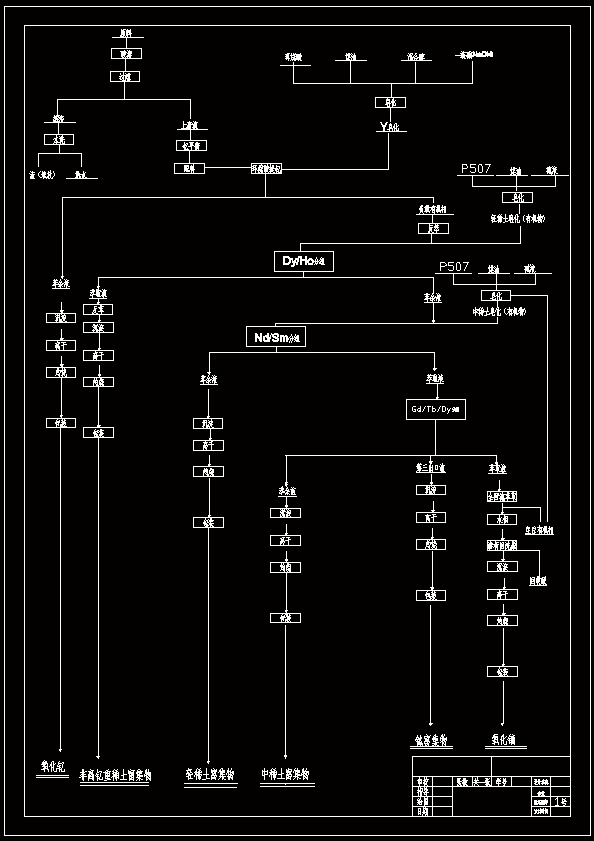 年处理100吨高钇重稀土稀土分离厂设计 设计还包括了分析检察、机电维修、辅助生设产备、总图运输、三废处理、投算资核。根据设计要求绘制了工艺流程图、萃取槽的结构图、设备连接图和厂房配置图。