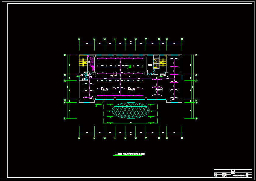 十二层(地下一层)9000平米办公楼消防给排水及灭火系统设计 本设计是对某办公楼给排水系统及灭火系统设计。参照规范本建筑被规定为二类高层建筑。室内消火栓取直径为65mm的栓口,19mm的喷嘴直径,25m长的水带,材料取胶质材料,确定室内消防用水量为25.5L/s,通过系统水力计算得到水泵的扬程为80m,选用型号DFW100-250/2/37的消防水泵两组一用一备。建筑消防水箱的容积为15.3m3,消防水池的容积为183.6m3,水泵接合器的数量为2个。增压稳压设备型号为ZW—I-X-13型。室外消火栓布置3个地上式临时高压消火栓。自动喷水灭火系统通过系统水力计算得到系统的设计流量为21.979L/s,水泵的扬程为77m,选用型号为DFW80-250(Ⅰ)/2/37的喷淋水泵两组,一用一备。该建筑的消防水箱的有效容积为14m3,消防水池的有效容积为159m3,水泵接合器的数量为2个。增压稳压的设备为ZW(L)-Ⅱ-Z-A型。使用CAD绘制出平面布置图与系统图。
