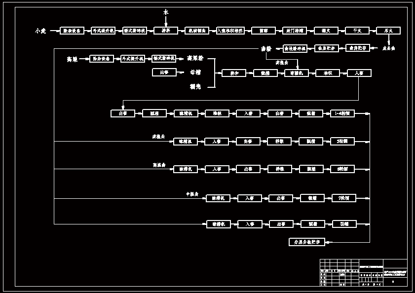 年产4000吨兼香型白酒厂酿酒车间设计 本次设计绘制图纸共4张,分别是全厂工艺流程方框图;发酵车间平面布置图;发酵车间立面图;全厂平面布置图。全厂工艺论证、全厂物料衡算、全厂热量衡算、水平衡计算以及车间主要设备计算及附属设备的计算与选型、车间布置等及全厂布置。